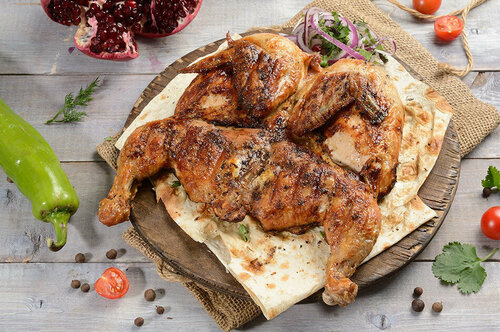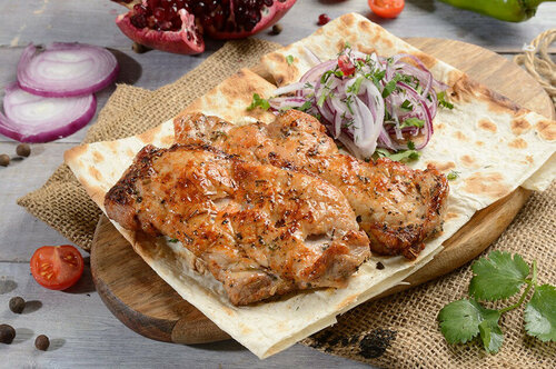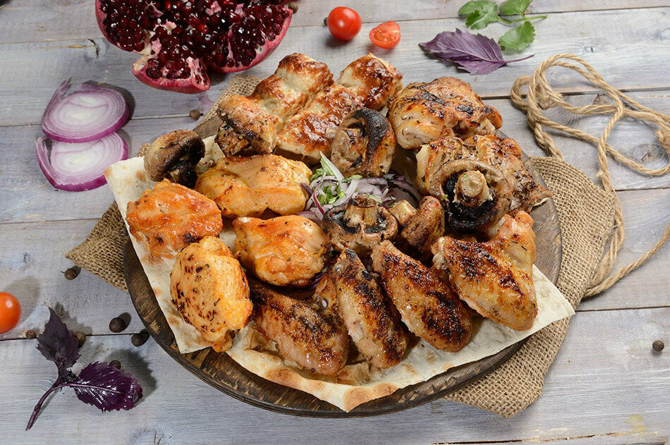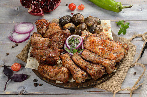 Курочка ассорти — нежная, пряная, с аппетитной корочкой, просто таяла во рту. А "шашлычок под коньячок" — это что-то невероятное! Мясо было настолько сочным, ароматным и пропитанным специями, что каждый кусочек вызывал восторг. Видно, что готовили его с душой и мастерством.